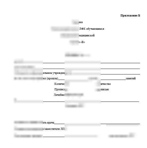 Справка должна быть заверена печатями и подписями врача, штампом медучреждения. Ее можно предъявить не только в кабинет ЛФК, но и по месту требования, то есть в учебное заведение.