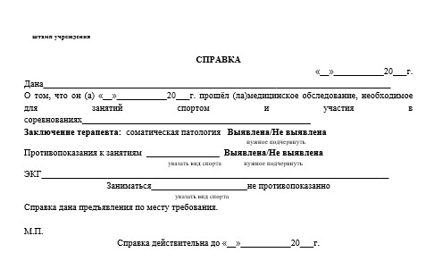 Более обширную медкомиссию спортсмен должен будет пройти, если ему необходима многоразовая справка.