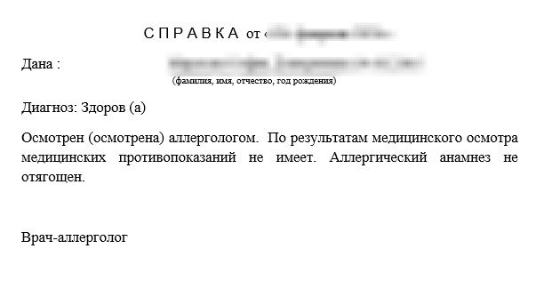 Кроме того, получить справку от аллерголога может любой желающий. В ней врач указывает, есть или нет аллергия, дает свои рекомендации.