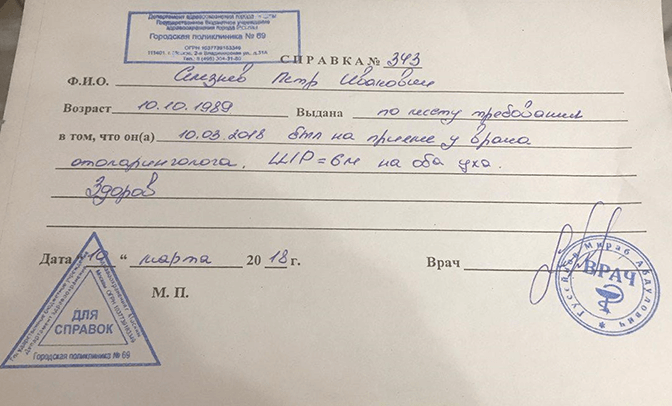 Справку от отоларинголога