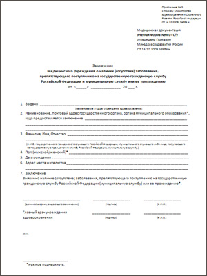- Информация об отсутствии противопоказаний к госслужбе.